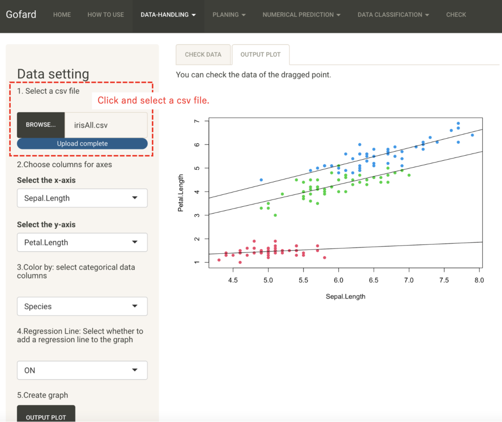Gofard can use tabular data sets to perform analyses such as data classification and machine learning predictions.