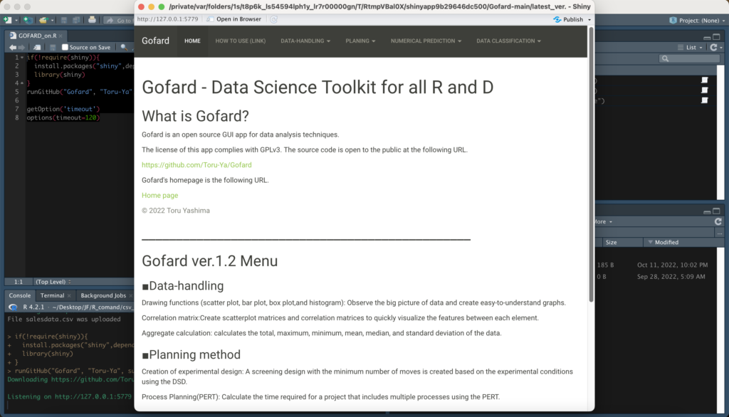 Gofard is a GUI application developed in R. It is recommended to use Gofard in a local environment on your PC.